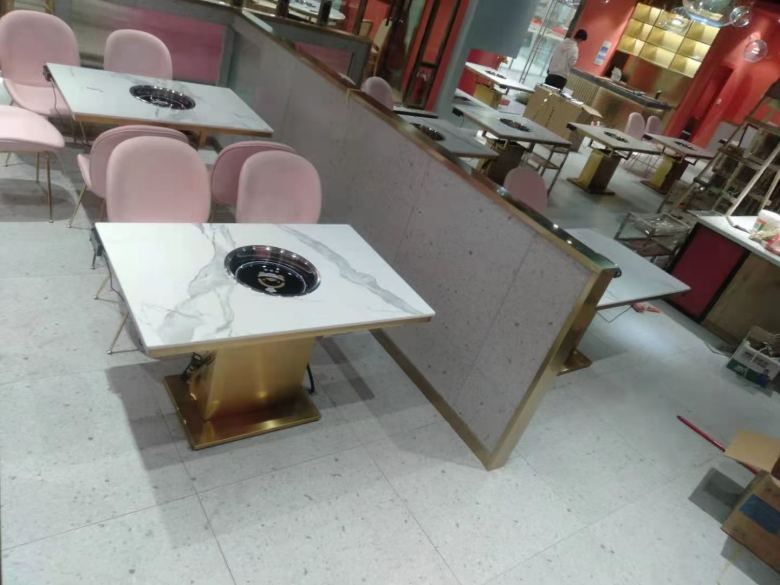 經(jīng)過兩個多小時的現(xiàn)場擺放組裝調(diào)試,大理石火鍋桌全部可以正常運轉(zhuǎn),本次安康口福緣火鍋店餐桌椅項目順利收尾,祝福尊貴的老板開業(yè)大吉,生意興隆,財源廣進!