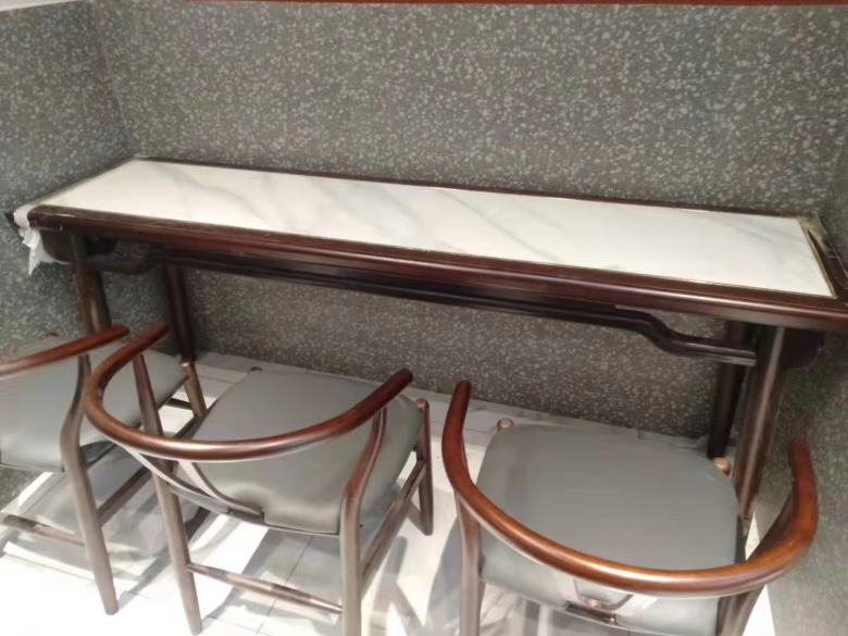 在跟客戶確認了材質和尺寸之后,工廠生產部就安排了加工,不到20天的時間,餐桌椅已經完工??蛻舻綇S驗收后,廠里一刻也不敢耽誤,即刻安排車輛和安裝師傅前往現場進行餐桌椅擺放。