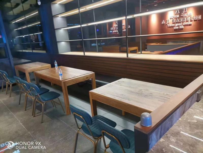 話不多說,做工如何大家可以通過我們工作人員在阿記燒烤安裝后拍攝的餐桌椅照片自己去看,想進一步感受博菲克家具廠的品質,歡迎前往阿記燒烤山陽店或工廠展廳實際體驗。
